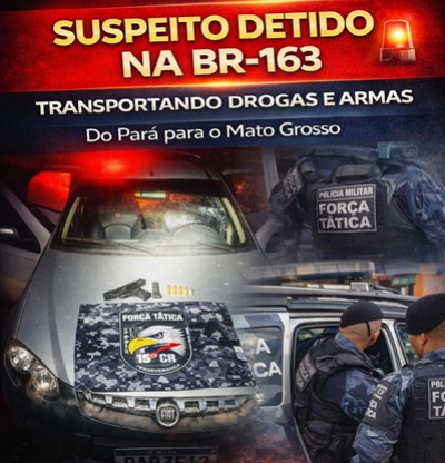 | 08/02/2026 SUSPEITO DE LEVAR DROGAS E ARMAS DO PARÁ PARA MATO GROSSO É INTERCEPTADO NA BR-163 |
