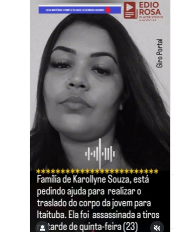 | 24/10/2025 FAMÍLIA PEDE AJUDA PARA O TRANSLADO PARA ITAITUBA DO CORPO DE JOVEM ASSASSINADA NA BR 163 |